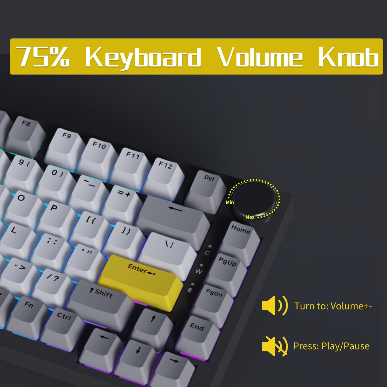 AJAZZ AK820 75% Wired RGB Gasket Mechanical Keyboard with Volume Knob